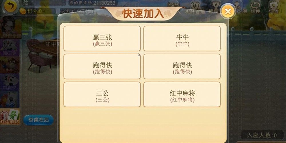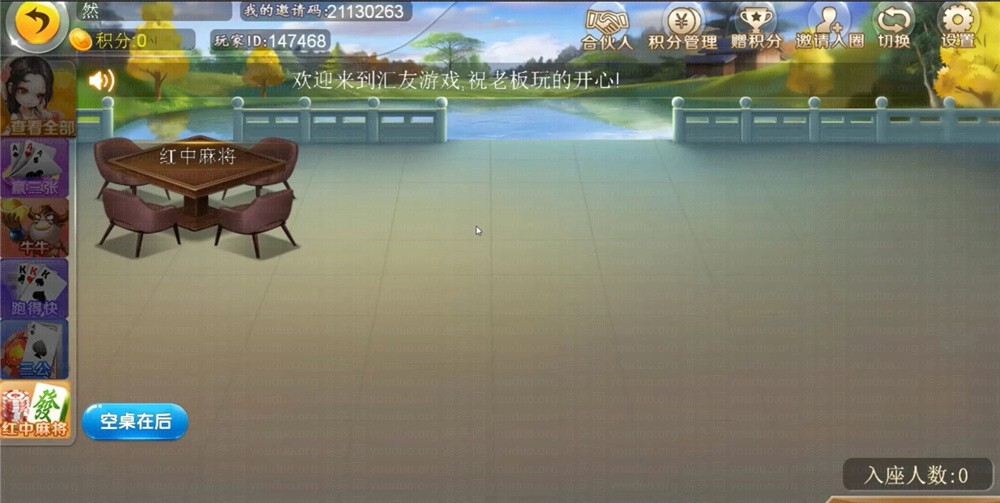 全新H5汇友上线了,同时支持亲友圈、以及大联盟模式,玩家进行游戏可以使用房卡、积分玩法。H5汇友平台内含多种游戏,包括赢三张,牛牛、跑的快、三公、红中麻将等。