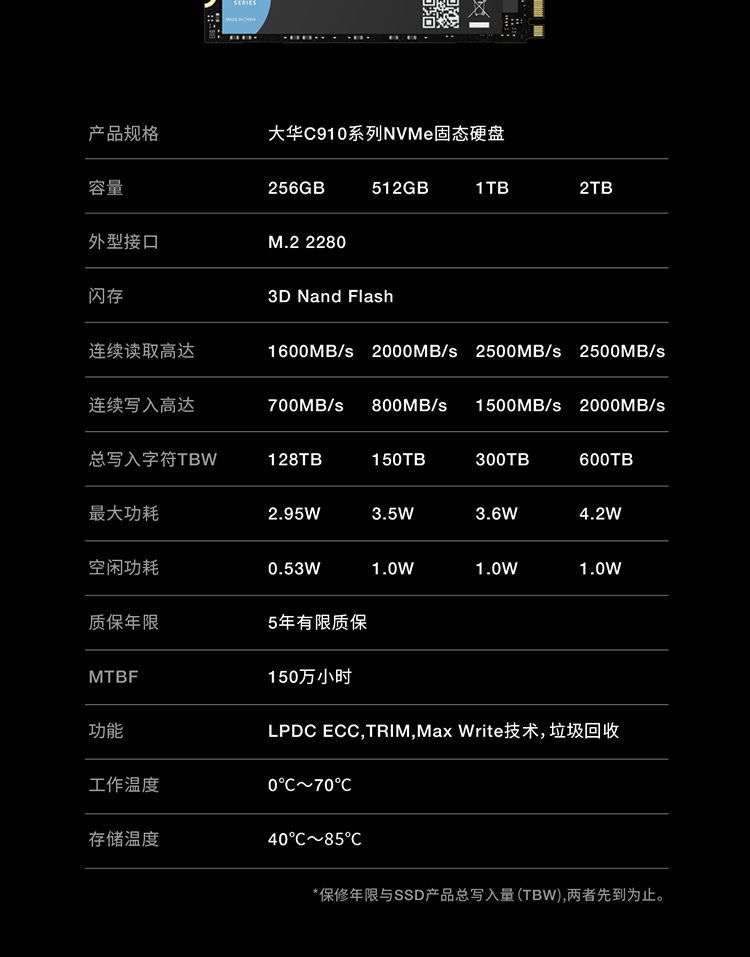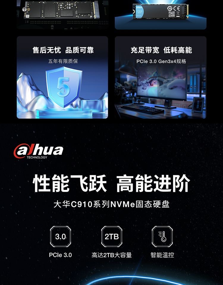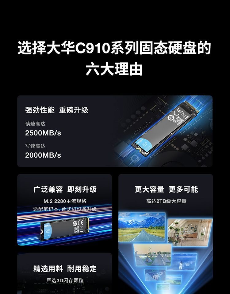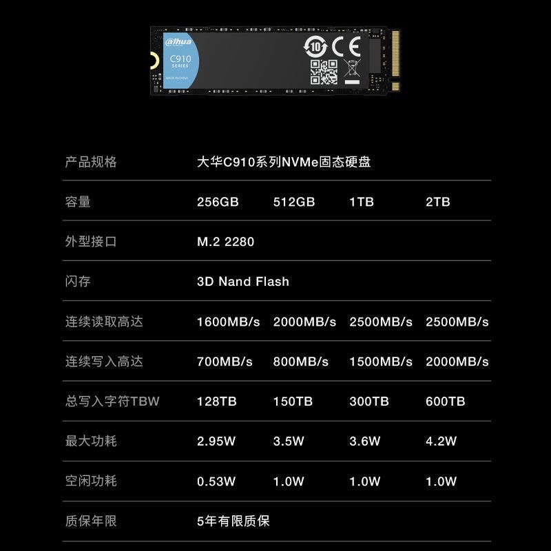 大华 C910 1TB M.2 NVME协议 PCIe 3.0 SSD固态硬盘